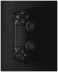 Moody close-up of a black gaming controller in low