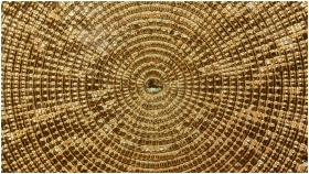 A detailed image of a golden circular metal textur
