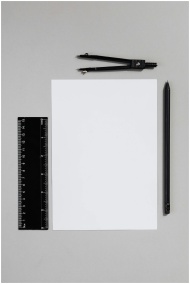Flat lay image of school supplies including a compass, pencil, and ruler on a gray background.