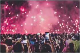Crowd capturing live fireworks at night festival,