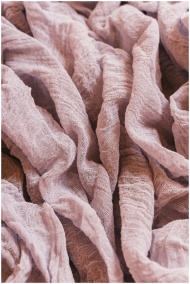 Close-up of crinkled purple linen fabric showcasin