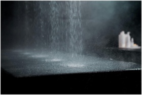 Artistic capture of water drops splashing on a dar
