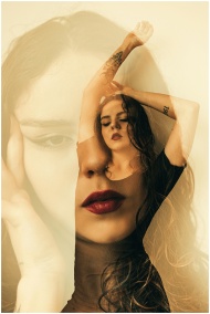 Creative double exposure portrait of a woman with