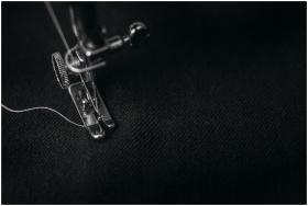 Detailed view of a sewing machine needle stitching