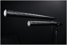 Close-up view of two professional shotgun micropho