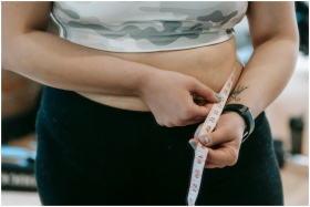Close-up of a woman's waist being measured with a