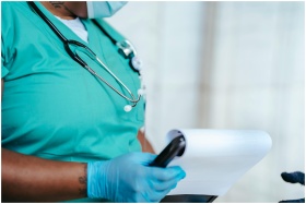 Close-up of a healthcare professional with arms cr
