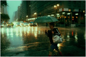 Woman walking with umbrella on a rainy New York st