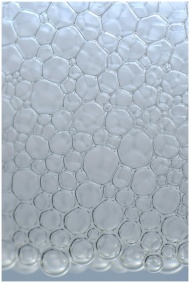 A detailed vertical close-up of delicate soap bubb