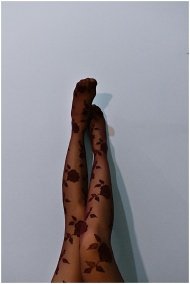 Close-up of floral print stockings against a minimalist background, showcasing elegant fashion.