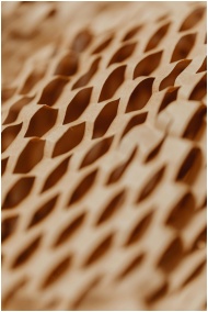 Detailed view of a honeycomb textured cardboard pa