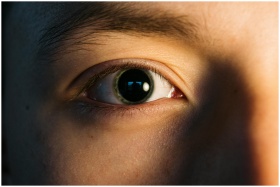 Detailed close-up of a human eye with shadow highlighting the textures and pupil.