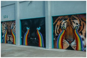 Colorful graffiti featuring a leopard, panther, and tiger with rainbow tears in Los Angeles.