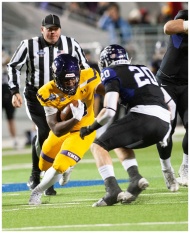 Dynamic college football game with athletes in act