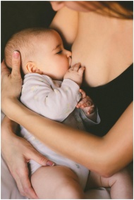 A close-up of a mother lovingly breastfeeding her baby, symbolizing care and motherhood.