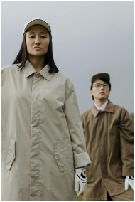 Two stylish golfers posing outdoors in autumn atti