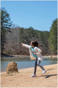 A child's hand pointing at a rocket illustration i