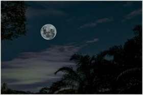 Serene view of a full moon illuminating a tropical