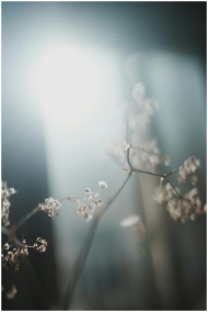 Soft-focused branches with blossoms illuminated by gentle sunlight, creating a dreamy effect.