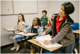A teacher conducting a lesson in a diverse, engagi