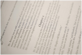 Close-up of an open book showing text and chapter