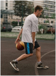 A man skillfully dribbling a basketball on an outd