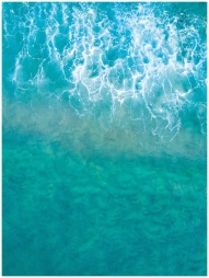 A stunning aerial view of turquoise ocean waves creating intricate patterns on the water's surface.