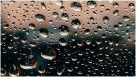 Macro shot of raindrops on a glass window with a c