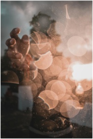 Mystical abstract image featuring hand silhouette with dreamy bokeh light effects, creating an ethereal ambiance.