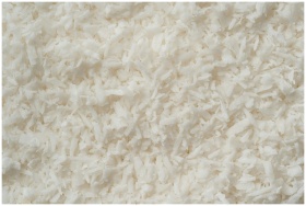 Detailed texture of fresh shredded coconut flakes,
