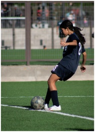 Young female soccer player controlling the ball on