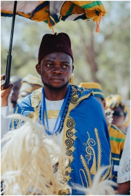 Man in traditional African attire participating in a vibrant cultural festival outdoors.