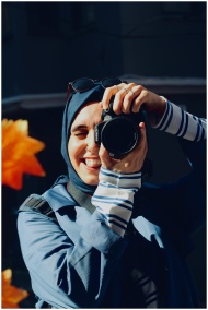Female photographer enjoying a sunny outdoor photo