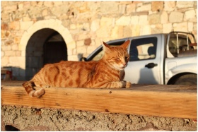 Ginger cat relaxing in Foça, İzmir with a rustic b