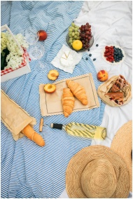 A charming picnic scene with fresh fruits, pastrie