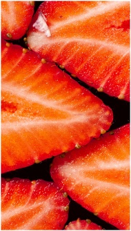 Close-up of vibrant organic strawberry slices, showcasing fresh texture.