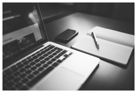 Modern laptop and smartphone on a textured wooden