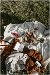 Delightful picnic spread on a colorful blanket in