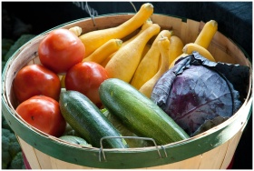 Vibrant assortment of fresh vegetables in a basket, highlighting healthy and organic produce.
