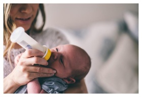A close-up of a mother lovingly breastfeeding her