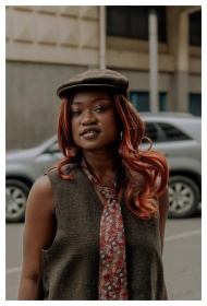 A captivating portrait of a woman in front of a cr