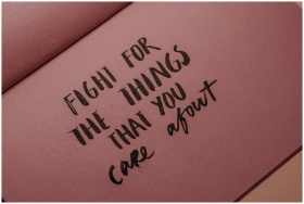 Hand-lettered inspirational quote on pink paper em
