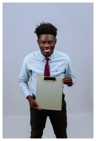 Young Man Smiling Clipboard Corporate