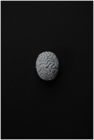 Monochrome representation of a brain against a dar