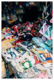 Colorful market in İzmir with hanging lingerie, ca