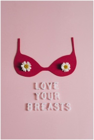 Conceptual art piece promoting breast cancer awareness with pink background and affirming message.