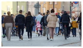 People Crowd Sidewalk Street