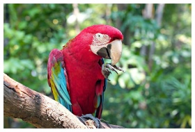 Detailed portrait of a Scarlet Macaw in Canada sho