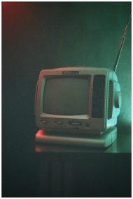 Retro television under moody lighting, evoking nos