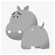 Sad hippopotamus sticker, cartoon animal